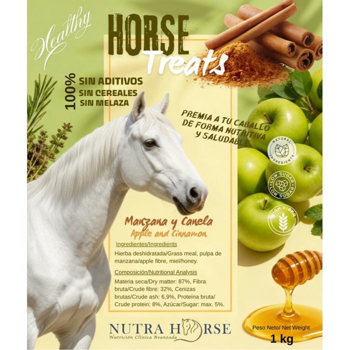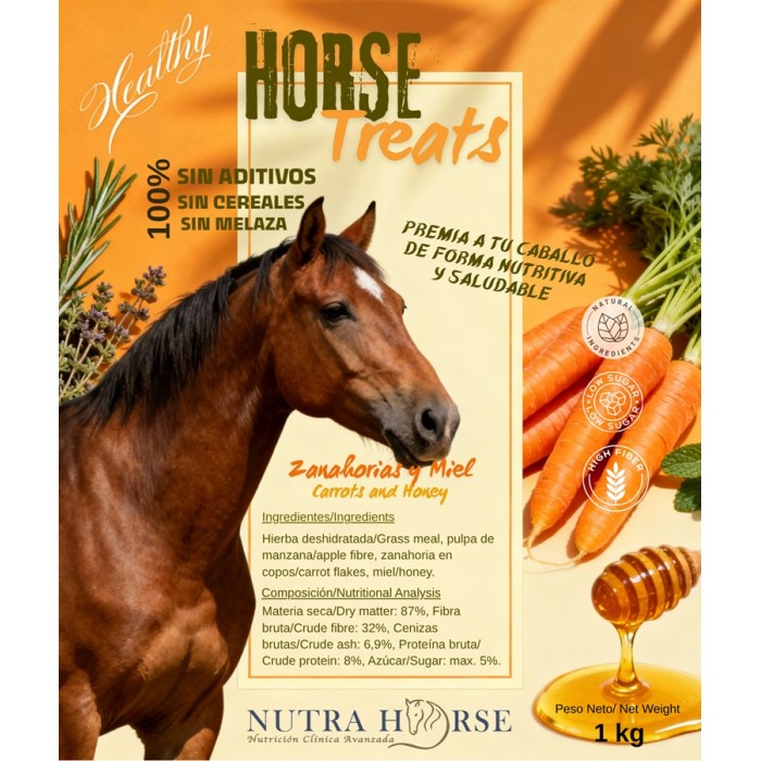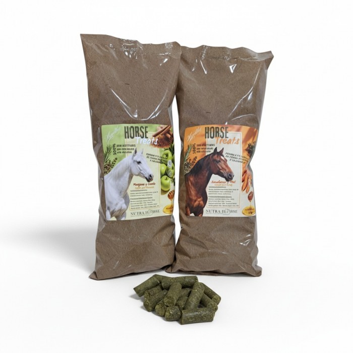Aptos para caballos con síndrome metabólico, sanos y súper sabrosos, para que tu caballo tenga ese premio especial realizado con materias primas saludables y sin aditivos.